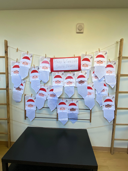 In December, Students take their Santa's beard home to continue working on their upgrade pieces, and the beard grows with their progress. If a parent has made it at home then it can be given as a fun gift in recognition of their hard work in the past and the fun week ahead that you will have together doing this activity that you made for them.